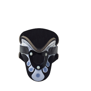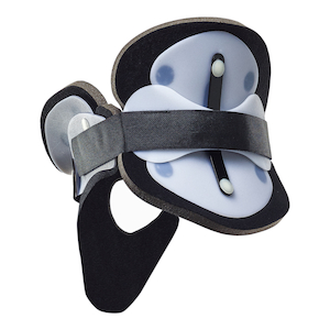A two piece cervical collar designed to limit flexion, extension, rotation, and lateral bending of the cervical region.Features