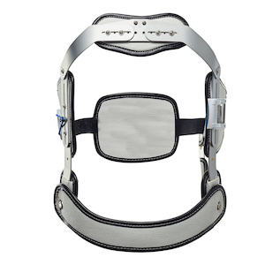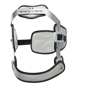 - Spring loaded hinged pelvic band rotates as patients move from a seated to standing position and helps prevent migration.