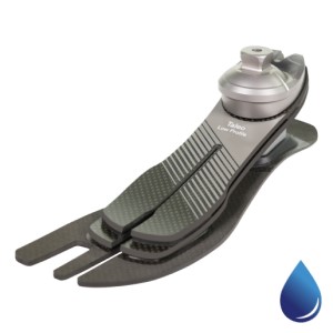 - Water runoff channels on connection adapter and drainage holes in footshell prevent water from collecting in the interior of the prosthesis